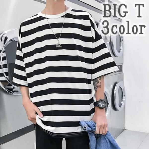 メンズ Tシャツ ボーダー ゆったり オーバーサイズ 半袖 Tシャツ カットソー Buyma